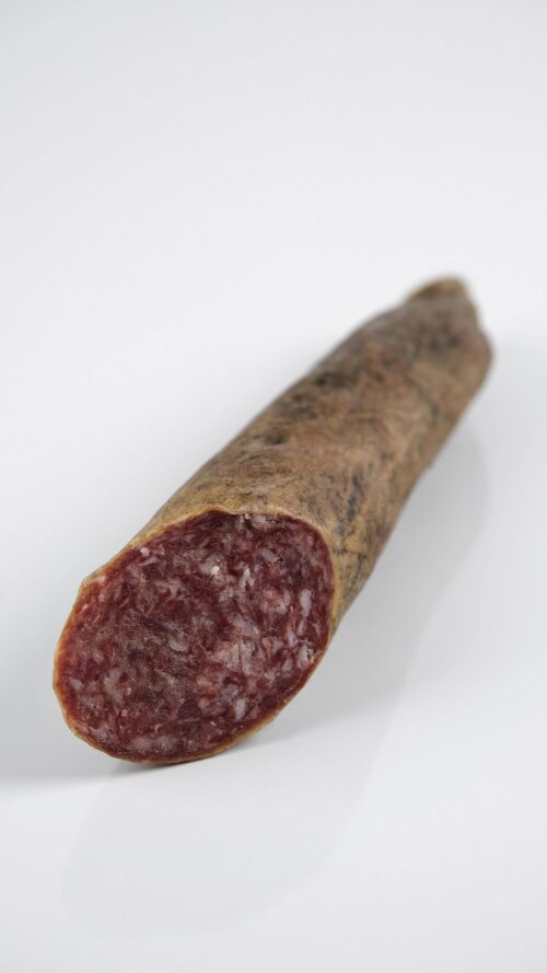 Picadillo de jamón de bellota 100% ibérico que ha tenido una cuidada maduración en secaderos naturales. Este jamón se caracteriza por su sabor intenso, en el que se encuentran toques dulces con recuerdos a frutos secos, textura suave y color rojo oscuro.